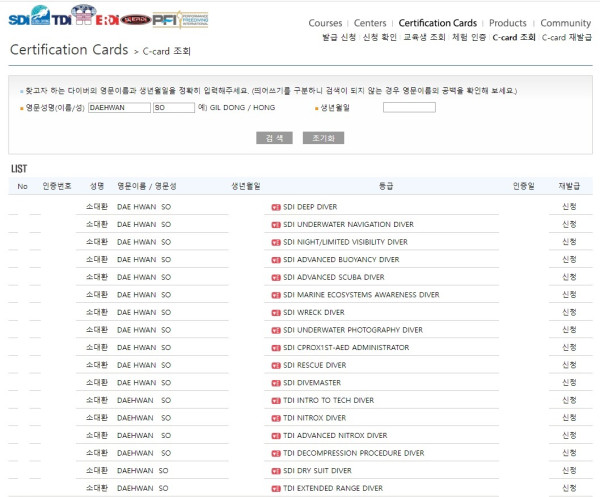 - SDI - 다이빙 라이센스 조회 및 확인 방법